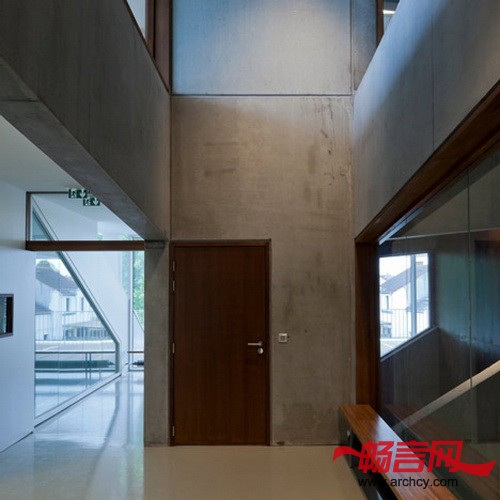 所有不同的部分都围绕着中庭建造。混凝土塔楼内既是设备间,也是楼梯和电梯的所在之处,同时,它也支撑着整个建筑。这座塔楼的设计加强了结构的载力度,也是托起楼板两端的钢桁架的有力支撑。坚固的结构和独特的外形让人们联想到当地独有的白垩采集场(在这个建筑的后面就有一座)。