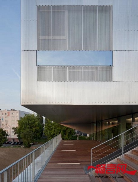 L’Arbrisseau社区中心未经修饰的铝质和玻璃保护层突出了建筑与众不同的空间分布。透过墙上厚厚的平板玻璃可以欣赏美丽的风景,阳光也可以透过它照进建筑内部。按照生态设计原则,这座社区中心采用了多种材料进行幕墙建设,包括金属和镜面玻璃等等,这保证了无论在夏天还是在冬天,社区中心使用者拥有良好的视野和舒适的温度。
