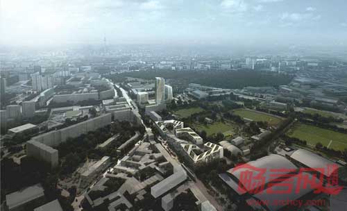 尽管单一用途建筑结构远为普遍,项目试图充分利用被誉为柏林心脏的Alexander广场的文化资源,向合并型居住靠拢。商业、社会和休闲设施通过体育、自然和生活三大概念性主题安排。开发计划方案使居民生活的城市空间具有绿色屋顶景观、瀑布型阳台、庭院和倾斜的绿色广场。