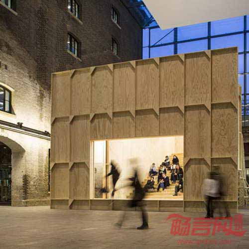 建筑的名称是Black Maria,出处是Thomas Edison的首个电影制作工作室。项目完全采用木制材料,设计灵感来自国王十字车站地区历史上曾经使用的工业木制脚手架以及当今该地区建筑场地使用的围篱。