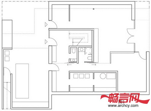 这一层分成了四个空间,每一个都是单个、自成一个小房子的“休息室”(green rooms)。