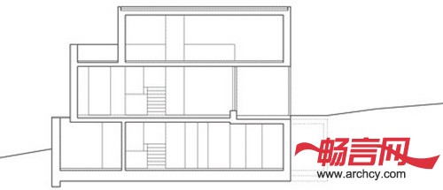 住宅的一楼,也是入口所在楼层,是用钢筋混凝土做成的,它嵌入到朝北的山坡里。而二层则是用木瓦作为幕墙的木质结构。