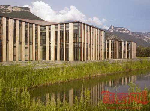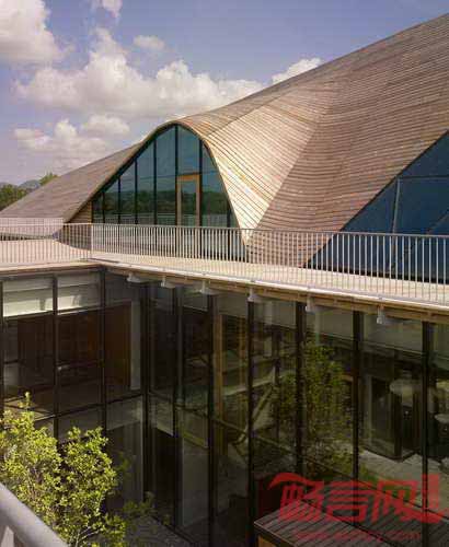 Herault Arnod建筑事务所设计了冬季运动产品制造商Rossignol位于法国南部山区的总部建筑。设计方案没有遵循传统办公建筑形式,依照崎岖的山区环境,设计出平滑连贯的建筑结构。项目使多种不同结构聚集在同一屋面下,涵盖滑雪工场和多个展示厅,并包含办公场所。因此,综合设计方案消除了部门之间的界限。木质屋面逐渐上升,形成建筑顶棚,再逐渐下降,构成办公空间的围护结构。设计方案使建筑和环境交融,室外露台种植了桦树,似乎是从建筑内部生长而出。不规则的布局方便建筑今后的增建,而不会打破方案的平衡。