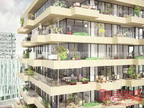 NL建筑事务所设计了位于荷兰阿姆斯特丹Zuidas中央商务区的大型住宅建筑Gershwin项目。场地位置优越,介于机场和老城中心之间,为一系列国内外公司提供了具有活力的办公环境。项目结合周界砌体和多层建筑,拥有较高建筑密度。通过活跃、引人注目的一层设计,项目营造出当代欧洲氛围。缓慢倾斜的结构自然融入周围环境,形成阶梯形轮廓,赋予建筑广阔的视野。