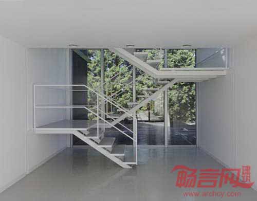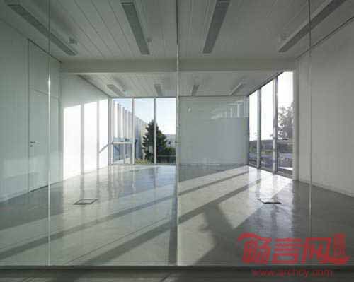 建筑具有落地窗和室内玻璃隔断结构,提升了空间的自然采光。