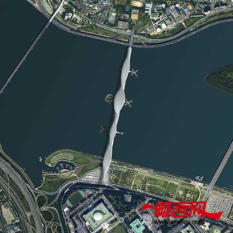 从水黾科昆虫形状获得建筑灵感,整座大桥也是由光滑、流畅的框架组织起来形成大桥的外形。大桥总长1080米,巨型的桥体上安装了许多太阳能板,能自己发电。