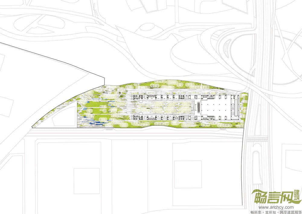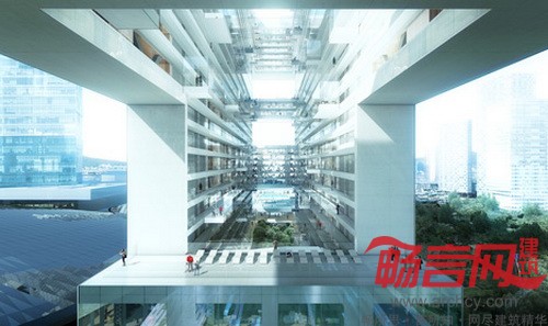纽约建筑设计公司REX是受邀为龙山国际商务中心设计大楼的15家单位之一,Project R6就是他们为这片未来商业中心打造的杰作。R6大楼是中空的,从114米高的楼顶也能看见楼体中央的地面庭院。