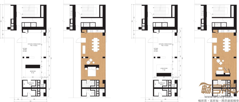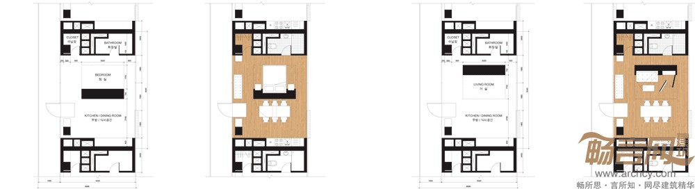 这些紧凑型公寓是为专年轻人、外国人和商务人士而设计的临时性居所,因此室内面积很少有超过40平方米的(共3种户型,面积分别为40平、50平米和60平米,其中40平米占绝大多数)。此外,设计师还采取了很多措施来节省室内空间,比如可移动的墙壁和折叠床等等。