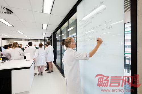 建筑的设计哲学是将来自物理、化学和生物学科的研究人员聚集一堂,共同完成跨学科研究工作。学院负责人Tanya Munro要求项目设计能够有助于正式与非正式的沟通协作。据此,建筑探究了在先进实验室环境严格条件约束下的三维空间连接方法。