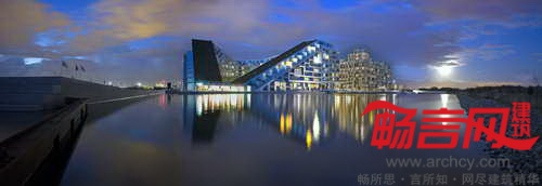 8 House项目位于Orestad南部、哥本哈根运河边缘。这个建筑给处于不同人生阶段的人们提供了温馨的家——年轻人和老年人,小家庭和单身一族,人口增加的家庭和人口减少的家庭。弓形的建筑创造出两种不同的空间,由中间的面积为500平米的公共设施区域隔开。同样的位置上,建筑被一条9米宽的通道贯穿,连接起相邻的城市空间——西边的公园区域和东边的水渠。建筑的居住和贸易区没被划分成单独的区域,而是将不同功能部分水平的展开。公寓在建筑高层,商业项目在建筑底层区域。因此,每个水平层都实现各自的要求:公寓满足了视野、光照、新鲜空气要求,而办公租赁和街道活动结合起来。