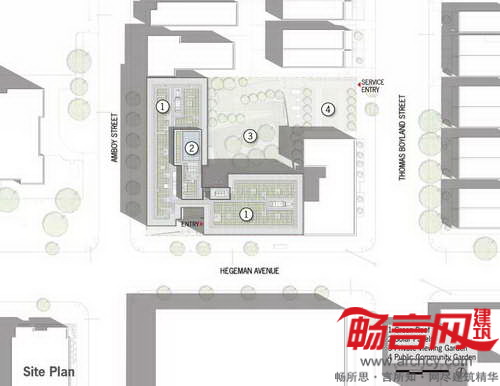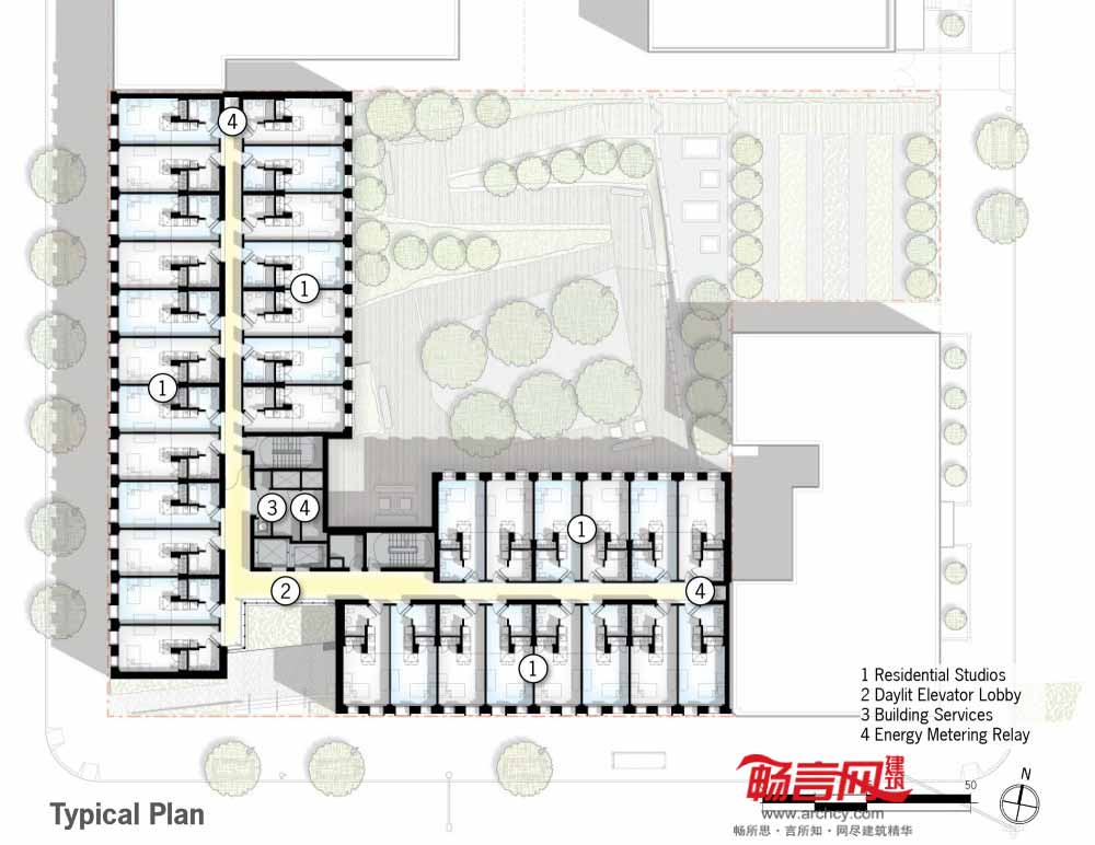 Hegeman住宅项目是开发机构开展的绿色运动的一部分,目的是通过健康的室内空气以及生态亲和设计倡导健康生活,为住户节省能源开支。同时,住户能享受到绿色的视野和充足的自然采光,即使在低办公楼层也同样如此。内部庭院提供了开发城市农场的机会,并给予所有年龄段的住户亲近自然的可能。