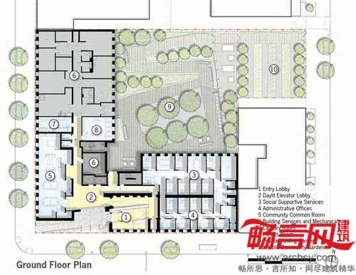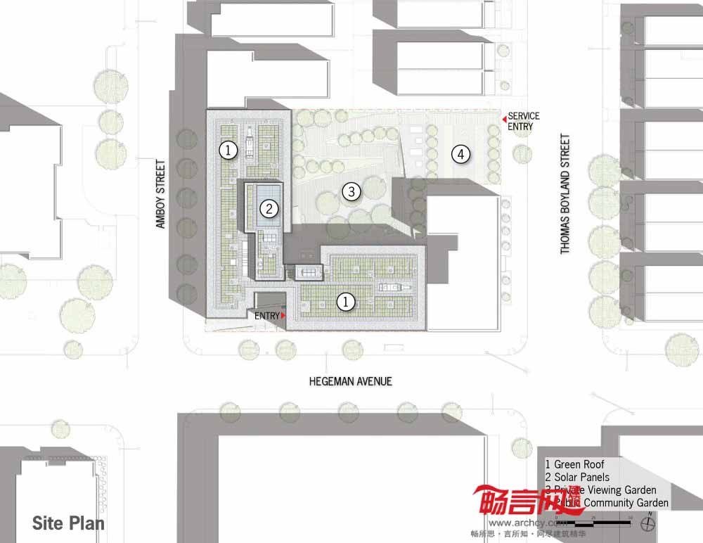 建筑设计兼顾了节能意识——门径控制系统和每户计量器都对能源使用进行了控制;同时基础设施设置还考虑到将来实施的热电联产系统;建筑屋顶累计有316平米的绿化面积,可以冷却建筑并处理暴雨来袭时的积水;屋顶还设置了太阳能板,用做户外照明需要;每套住宅都使用了耐久并无毒的材料,并且节能节水。这一系列举措可能为项目赢得期待的LEED银质认证。