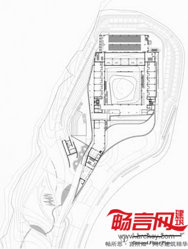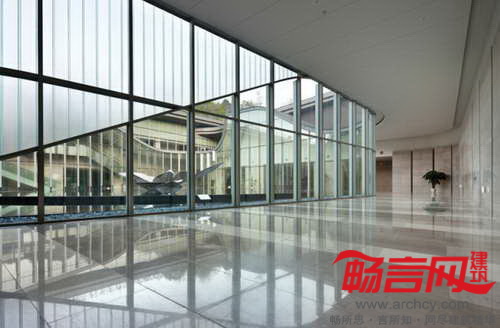 参加最后告别仪式的逝者家属绕过庭院,通过一条带有拱形天花和间接照明的道路;在前往火化凹室的途中,天花高度陡然升高;道路尽头处,一个蜿蜒曲折的花园对悲恸的亲属情绪起到了安抚作用。