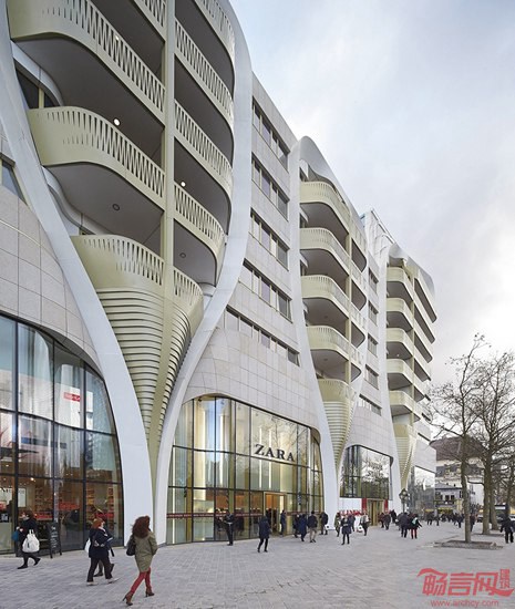 荷兰UNStudio公司完成了其位于比利时的首个项目。这是位于布鲁塞尔de la ToIson d'or大街的一座混合功能建筑。项目构想为传统建筑类型和混合开发计划的综合产物,涵盖零售和住宅单元。项目得到了Jasper Eyers事务所的参与。建筑包含72套公寓,1.3万平米的商业空间啊,1040平米的托儿所,330个停车位和一个高架城市花园。