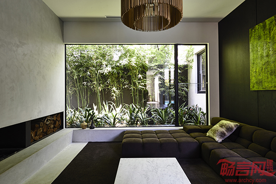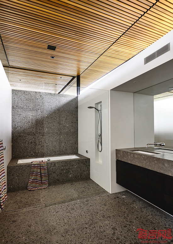 采用这种别出心裁的设计,建筑师意在营造一种放松而又精致的氛围。进入房子,顺着通道往里走,内部结构逐渐明朗,室内外起居空间相互贯通。