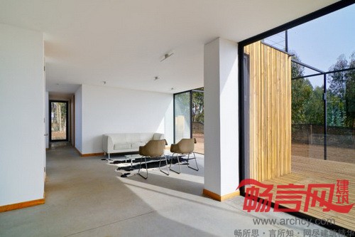 通过对2块墙板、2块地板以及其他材料进行组合,就能建好一个6平方米的居住空间。这些居住空间还可以横向扩大,整个房子就是由这样一系列的居住空间按照不同的区域功能组合起来的,这些空间通过一个中央活动区互相连接。