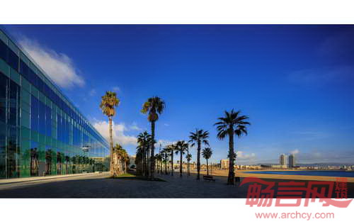 大楼顶层露台提供俯瞰城市魅力海景的机会,同时也成为举办公司活动和时尚展会的理想场地。项目设计借鉴了Barceloneta大道区域常见的城市形态,狭窄的街道通向具有遮阳结构的室内广场。格栅添加了遮阳板、通风和安全保障,提升了内部人员的舒适度。