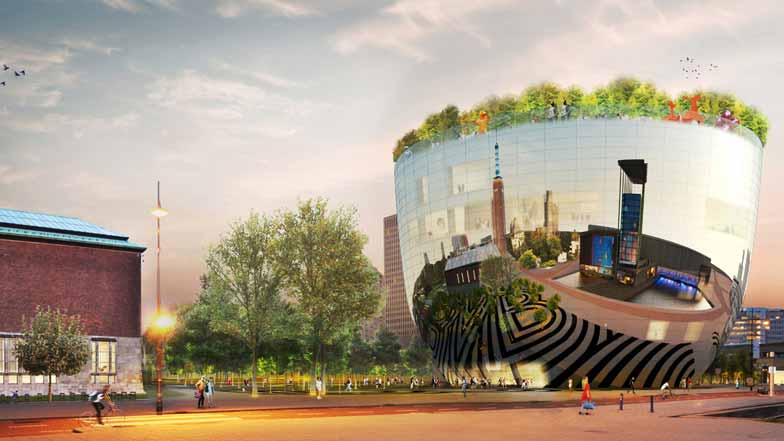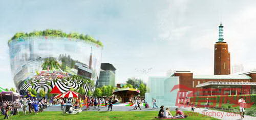 荷兰MVRDV工作室公布了其赢得设计竞赛优胜的方案——鹿特丹Boijmans Van Beuningen博物馆艺术仓库。项目是一座碗形建筑,拥有屋顶雕塑公园和镜面外立面。MVRDV设计的六层艺术展览建筑将容纳12.5件绘画、雕塑作品,多数向公众开放,成为鹿特丹规模最大的艺术空间。项目坐落于OMA事务所设计的博物馆公园场地北端,环形空间从下至上逐步外沿,减少用地空间和对公园的影响。外里面采用反光玻璃,映衬周边环境。公共走道将环绕建筑六层空间,从一层大堂和咖啡厅到展览区,直至顶层餐厅。这些设施将通往由芬兰建筑师Matti Suuronen1960年代设计的未来主义公园。