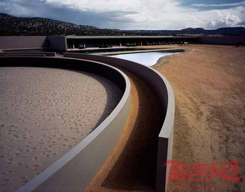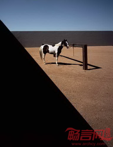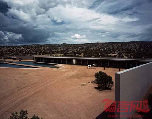 安藤忠雄设计的建筑一向被认为具有宁静的力量,他为知名时尚设计师Tom Ford设计的私人马场也不例外。位于美国圣达菲的马场位于一片开阔、神秘的环境中,马场风格与场地环境取得了共鸣。马场体现了Ford这位奥斯卡获奖导演和时尚巨头的哲学冥想,规模巨大、材料淳朴,显示出Ford由衣香鬓影的时尚圈向深刻精神领域追寻的过渡。