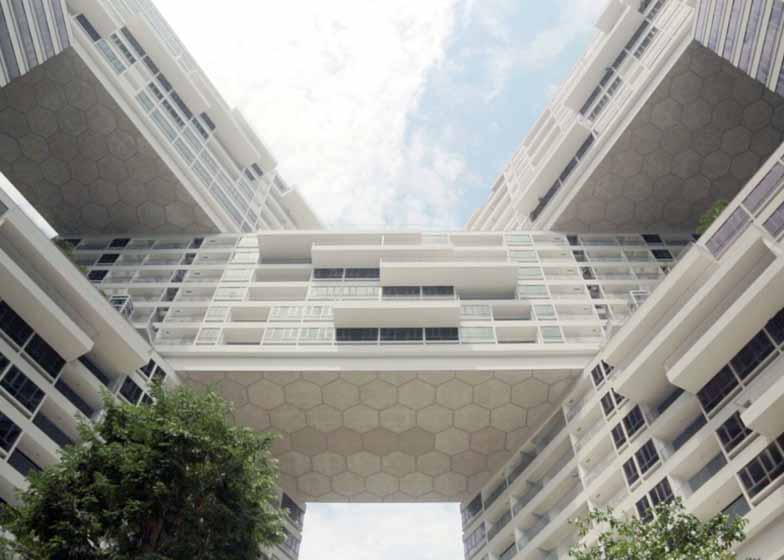 新加坡Interlace住宅综合体项目包含31座呈对角堆叠的公寓楼,该项目将于2014年完工。项目由前OMA建筑事务所合伙人Ole Scheeren设计,由一系列几乎完全相同的六层建筑物构成,依照蜂巢结构、排列在六边形庭院周围。项目建筑面积达17万平方英尺,容纳了1040套公寓,位于城市南部Ayer Rajah高速公路和Alexandra路的交叉路口。建筑堆叠结构形成无数外部空间的悬臂梁和桥梁结构。综合体屋顶设有花园,楼梯位于建筑物之间重合的位置。