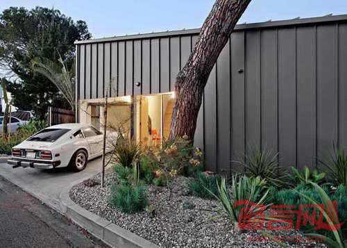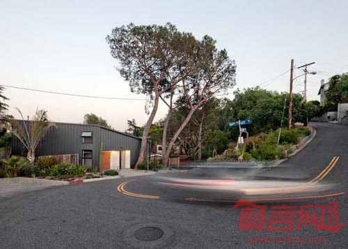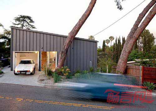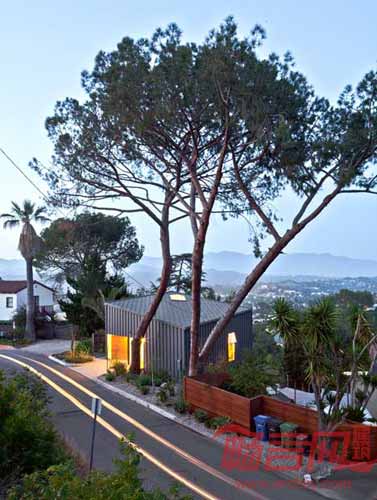 位于洛杉矶东北部的一栋微小房屋由当地的Anonymous建筑事务所设计,住宅坐落于山腰,仅有三个房间,底层具有混凝土架空结构。