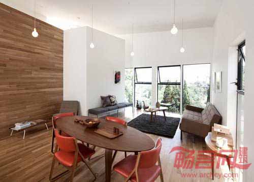 两层的住宅提供了最大程度的空间,它占据的场地仅相同于临近建筑的一半。