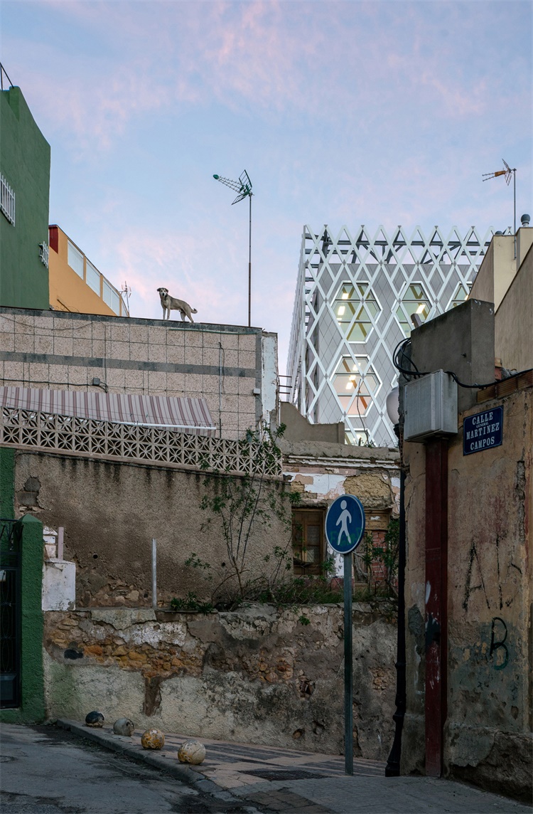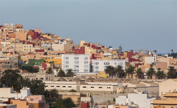 项目坐落于非洲海岸与摩洛哥接壤的梅利利亚,是西班牙的一个自治城市。在2003年关闭之前,梅利利亚历史市场已经运行了约90年。Angel Verdasco事务所使用铝梁格栅覆盖瓷砖,在梅利利亚的废弃市场上建立了一个教育中心。早在2008年,马德里Angel Verdasco事务所赢得了设计竞赛,被委托对基地进行活化设计。任务书要求将现有的三个教育中心(一所音乐学院、一所语言学校和一个成人教育中心)迁移到被废弃基地。
