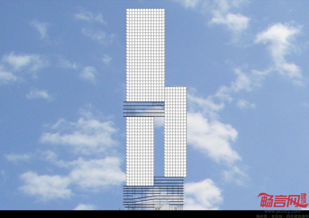 Angkasa Raya大体由5个模块构成——3个“悬浮”大厦楼体和2个由多层混凝土板构成的水平模块——这些模块既是相对独立的,又以一种奇特的方式堆积联系在一起。与众不同的是,Angkasa Raya并没有采用双子座的模式来与对面名声大噪的双子塔媲美,也没有采用简单的直冲云霄的摩天楼形式而泯然于周围林立的高楼中,它独特的形态是对这座首都城市的现代化解读,它是马来西亚多元文化之间动态平衡与和谐的象征。