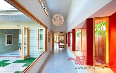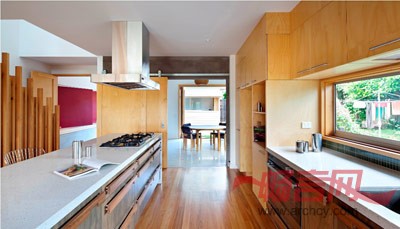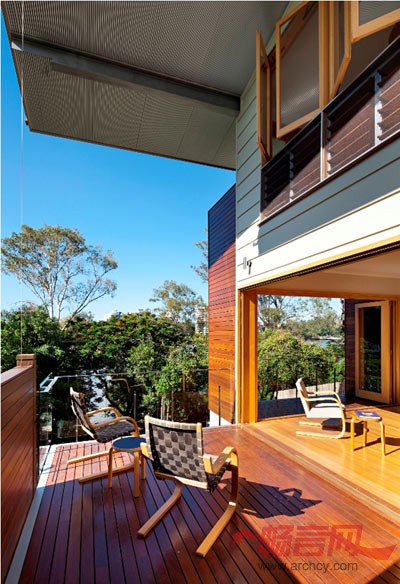 这所3层高的住宅位于布里斯班内的Hill End,为适应澳大利亚的亚热带气候,其门窗被设计成尽可能大,以获取凉风、阳光和自然光线。该住宅分为两个部分,由一条引人注目的带有屋顶的通道进行连接,以带动空气流通。整栋房屋的大窗户为居住者创造了河岸景观,同时也减少了对人造光源的需要。