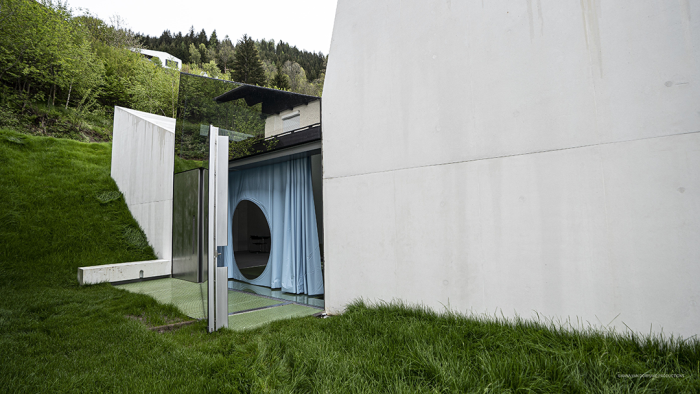 在地面以上,房子的白色混凝土外墙与周围环境形成了一种动态的对照关系:在夏季,它与绿色山丘形成鲜明对比;在冬季则完全隐藏在雪景中。