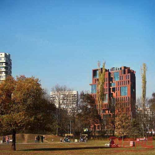 公寓设计的落脚点是砖块的使用,该材料将新旧两种理念聚合起来。由于几个世纪来多种形象与砖块材料有联系,材料自身具有丰富的视觉寓意。砖块由粘土制造,经过烈火煅烧和工人手工的工艺,积聚了三方面的热量温暖。