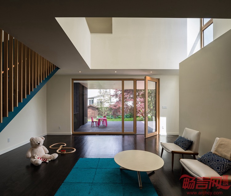 纽约EL工作室设计了位于马里兰州的一座平房扩建项目。项目在原有建筑上方增添了一个双倍大小的现代方形结构。林肯街住宅最近完工,业主是一对有两个年幼孩子的夫妇。业主希望扩展其生活区,并保留原有住宅结构。设计师表示,业主需要更多游戏空间,并要求有更多单独的房间,不过还要在一个宽敞的家中,让家人之间保持联系。