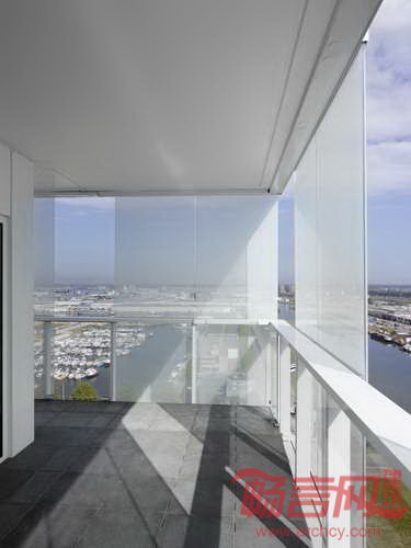建筑露台外巧妙拼接的玻璃立面不仅遮风避雨,而且构成迷人的光影效果。建筑一层为商业设施,上方的20个楼层提供多样性的居住风格。