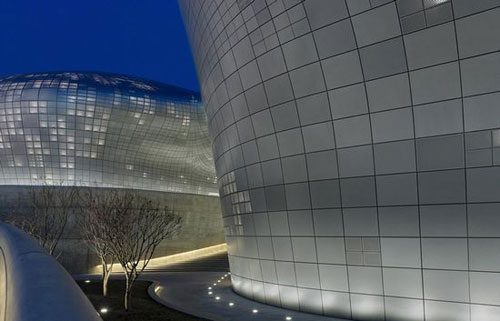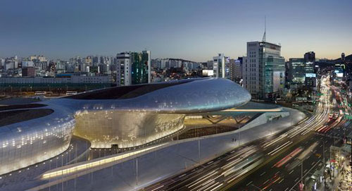 新建成的首尔DPP建筑面积8.6574万平方米,建筑最高高度29米,地下3层、地上4层。首尔DPP由英国着名建筑师扎哈·哈迪德操刀设计。她是第一个获得建筑届最高荣誉——普利兹克建筑奖的女建筑师。号称当前世界上最大非标准建筑的首尔DPP,主要特点是拥有使人联想到飞碟的银色曲面和灯光效果。此外,首尔DPP采用太阳能供电技术,并使用环保材料以及雨水收集系统,以实现环境亲和。
