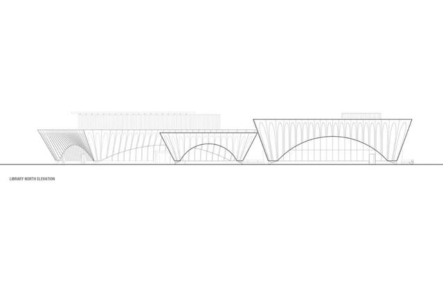 三栋建筑中所用的“拱”设计语言灵感来源于当地独具特色的动物群及建筑。拱形的屋顶线和大面积的窗户在内与外之间形成了通透的关系,并将自然光引入了建筑物的深处。如图书馆及活动中心等的多样功能区域则有着灵活的平面设计,以此鼓励着人们穿梭于不同功能区、不同建筑之间,并以最大的限度提高每一个空间的适应性。