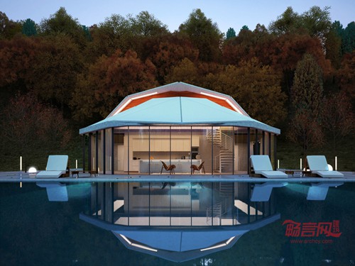 铝板采用了白石膏EIFS(外墙外保温系统)处理,增强隔热效果。此外,房子外形酷似一个贝壳,其中包括一间大工作室、一个厨房、卧室、浴室和娱乐室;顺着螺旋状的楼梯往上走,就是一间宽敞而舒适的客房。
