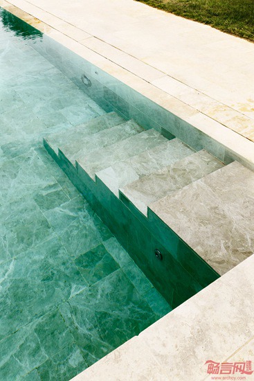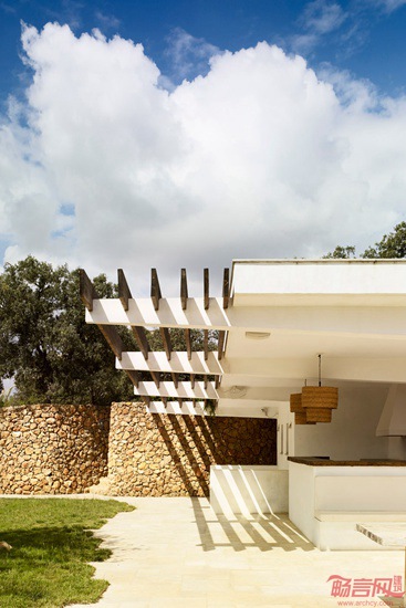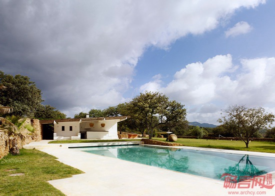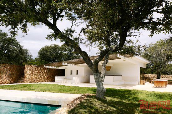 Roz Barr建筑事务所设计了位于西班牙Sierra Nevada地区的现代住宅项目。住宅带有一个室外泳池,掩映在绿树之中,建筑两旁设有干燥的石墙,屋面种植了草皮,从而与环境相互融合。住宅场地是一块公路下方的坡地,包含户外厨房和更衣设施。项目运用景观和传统西班牙式建筑手法,结合乡土建筑施工技艺和清水混凝土外形。