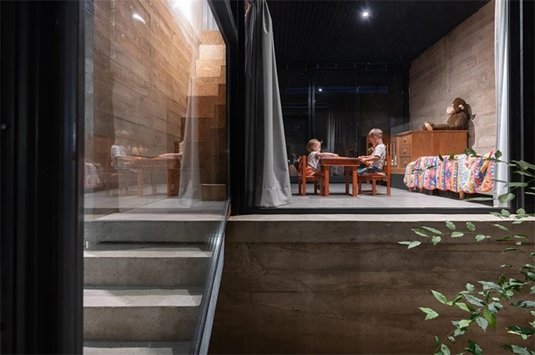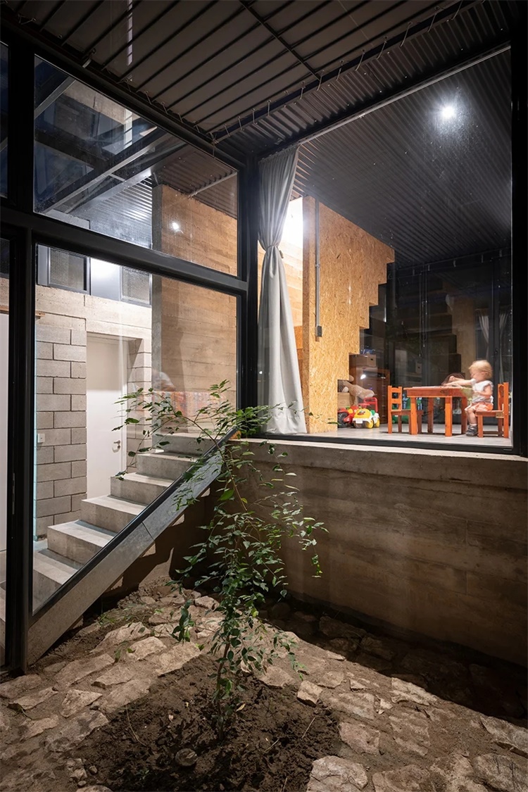 建筑设有大型中央走廊,这个主要交通空间是为了创建室内外空间的衔接和过渡。二层楼梯围绕与内部庭院中央的树木展开。设计师将住宅概念形容为变化和成长的过程。设计和建造过程中的多个阶段中,会随家庭经济发展和地区条件变化而调整。