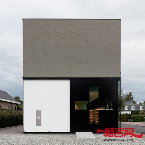 独特的设计和精心选择的材料(大块玻璃和深灰色砖墙)构成了这个现代的建筑,并让它与周围环境相互融合。