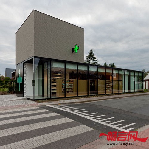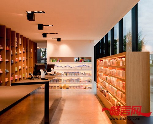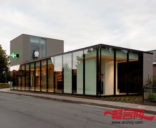 玻璃墙为药房里面提供了良好的光线效果和视野。