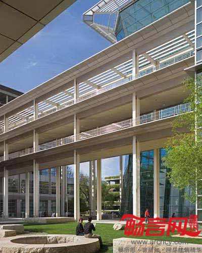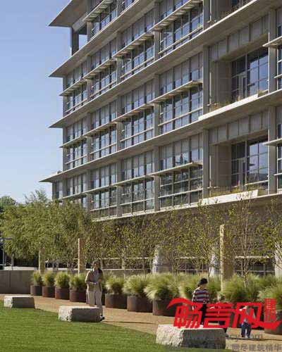 获LEED金质认证的CalPERS总部综合体不仅为能源高效利用设计树立了范例,同时也丰富了美国萨克拉门托的城市肌理。综合体横跨了两个街区,包含了公司办公室、商铺和大面积的地下停车库。项目面积约为10万平米,涵盖了两栋U型的4层和6层建筑,构成了一个公共庭院。建筑设计方是Pickard Chilton公司,项目建造费用是1.92亿美元,项目预算是2.65亿美元。
