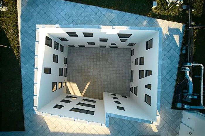 Studio Libeskind 在这座五层建筑的设计中采用了简洁的白色外墙,垂直的几何切面从外墙优雅地层叠而下,倾斜的金属屋顶在上层设有雨棚窗。中央开放空间被设计成供住户使用的景观庭院,单元和走廊的大窗户以及多个室外空间都引入了充足的自然光。