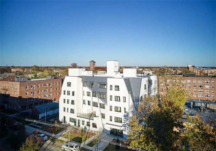 Studio Libeskind 与自助社区服务公司(Selfhelp Community Services)合作,在长岛弗里波特村建造了一座经济适用的老年公寓。该建筑名为 Allan & Geraldine Rosenberg Residences,围绕一个景观庭院设计,促进了居民之间的互动。该建筑占地约 42,000 平方英尺(约 3,902 平方米),提供 44 个一居室单元和一个两居室管理员单元,主要面向当地 55 岁及以上的低收入老年人群。