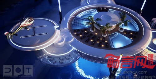 波兰深海技术公司Deep Ocean Technology(DOT)近期公布了一项新奇的建筑设计方案:迪拜的一座水下酒店。该酒店由多个具有科幻色彩的“圆盘”构成,其中一个“圆盘”位于海底,距水面有21层楼的高度。客人们从卧室里就可以惬意地欣赏波斯湾的水下美景。