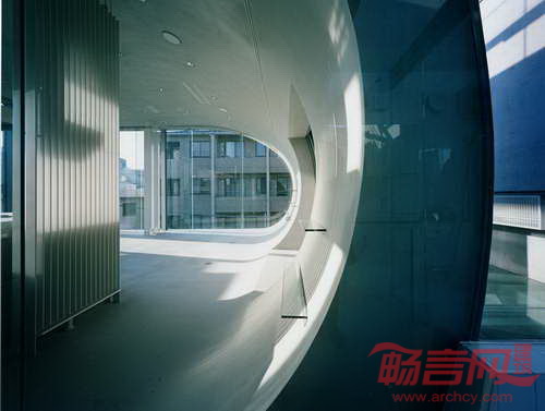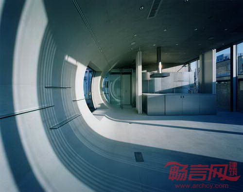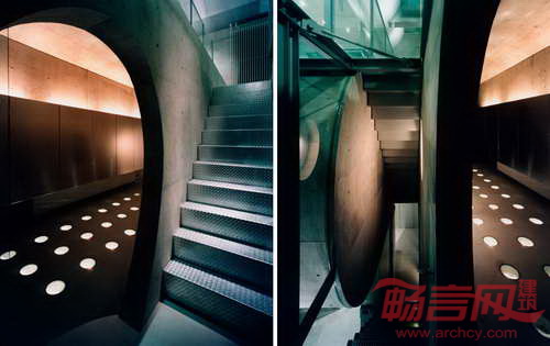 两种概念作用力相互碰撞的空间展示出有趣的扭曲,人们不太容易辨别空间是敞开或是封闭的,因而创造出同时具有虚实两种特性的空间。玻璃楼板使住户理解整个建筑的结构逻辑。建筑相当简洁和原始的材料配合低调的室内装饰,光线反射在处理光滑的表面上,使空间充满生机。