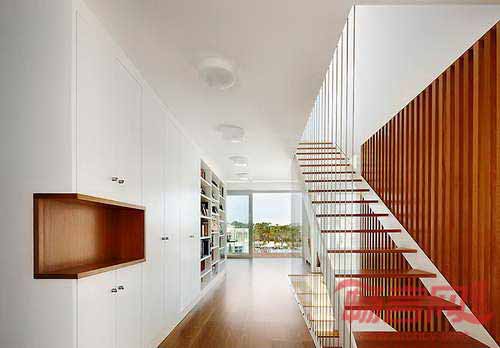 一层容纳了起居室和户外厨房设施,以及一系列连同泳池的避暑房间。二层和三层被设计成“冬屋”,因为这些房间与室内楼梯相连,围绕一个被竹子覆盖的海湾阳台而设。