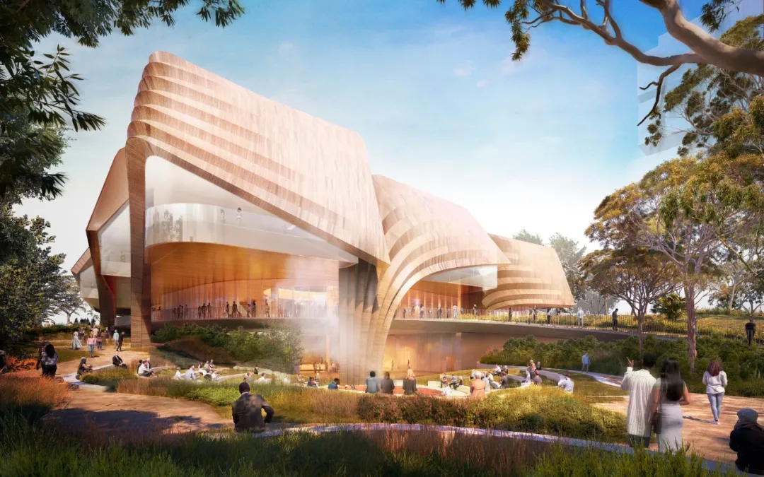 自从建筑参考方案于2021年2月公布以来,该概念通过与土著社区进行更为深入而广泛的接触,得以推进。这也是合作设计过程的一部分。Woods Bagot的首席设计师Rosina Di Maria说:“在真实、透明和忠于原始设计叙事的驱动下,设计一直重视来自土著群体的意见参考。”为了与乡村建立更强的联系,特色画廊现在完全在室外,建筑更明确地从地面升起,立柱似乎是从地面生长出来的。