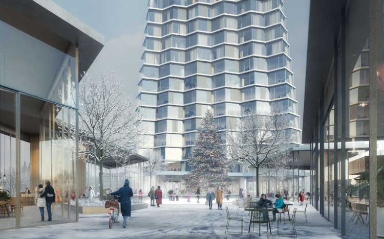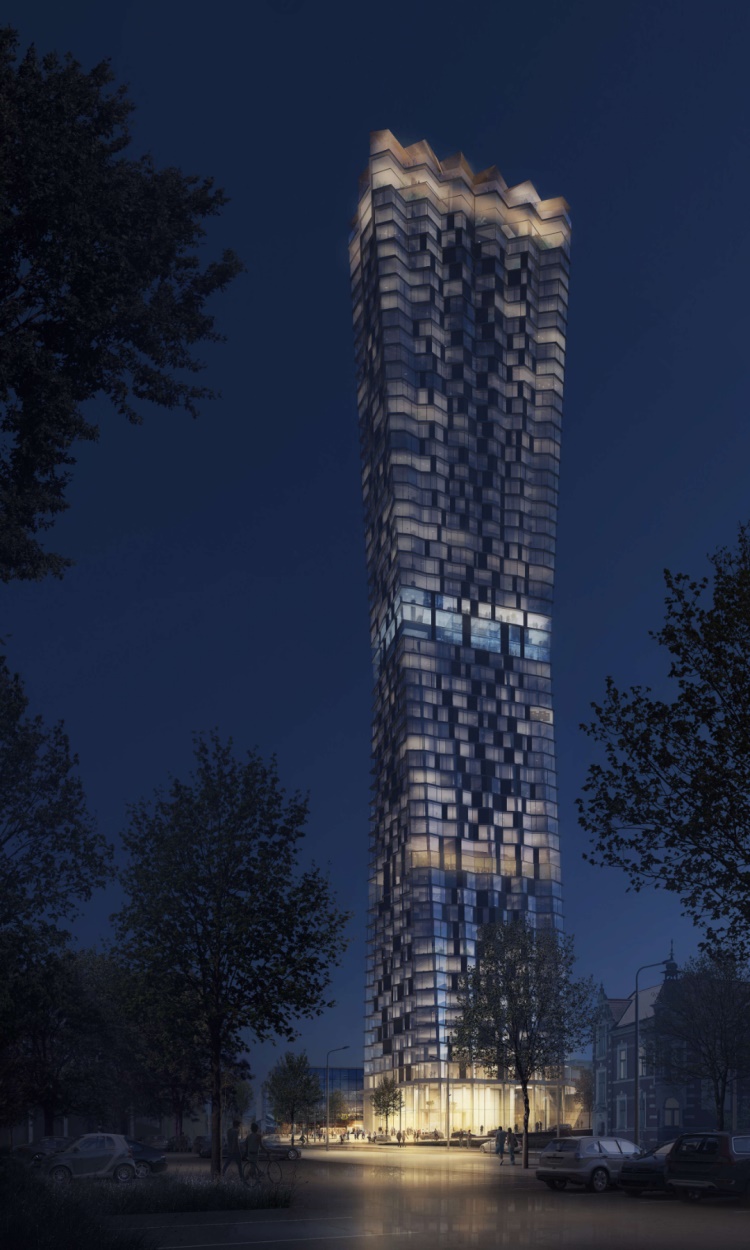 这座 56 层高的塔楼沿轴线移动并向外扩展,提供广阔的城市景观。顶层拥有360度全景的公共屋顶和咖啡厅、餐厅和酒吧的多功能空间。该建筑的形状受到其对城市和景观景观的反应的启发:下部与公共空间和城市结构相关,而顶部则移动并成为与市中心对话的灯塔。