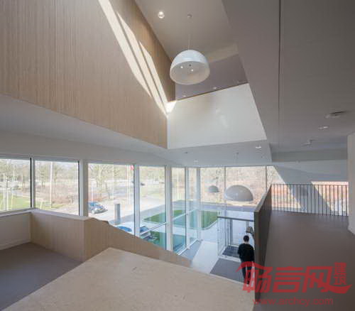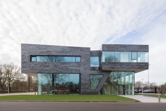 Doetinchem消防局建筑结合了可持续性、功能性和设计美观的办公环境。Doetinchem消防局24小时运行,建筑容纳了办公、公共、休息等多种设施。具有多个视野的空间排列显得清晰透明,使访客能够看见消防局内热火朝天的工作景象。结构稳固的建筑如同绿野中的别墅,取得了A+级节能认证。整个设计流程中均考虑到可持续性及对环境的融合。消防局位于Doetinchem主干道旁,水平排列的建筑具有简洁线条和表面,周边是茂密的树林。建筑涵盖一层的救火车存放区、工作台、洗车房,二层的宿舍区,三层的办公、休闲、健身和公共区。