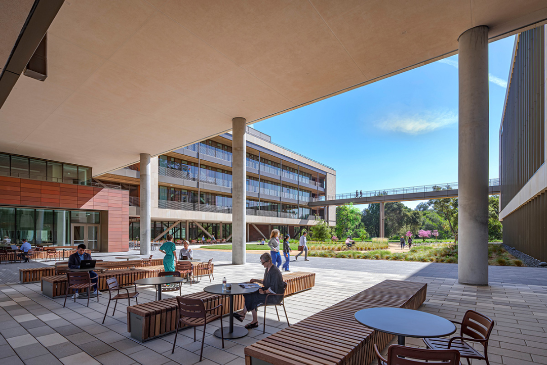 项目是斯坦福大学医学院与帕洛阿尔托临床校区和植物园之间的一道门槛,旨在为其周围的医务人员提供喘息的机会,以适应他们的学术和研究工作,并提供办公室、会议室、协作、教育空间、健身中心和餐厅风格咖啡店。